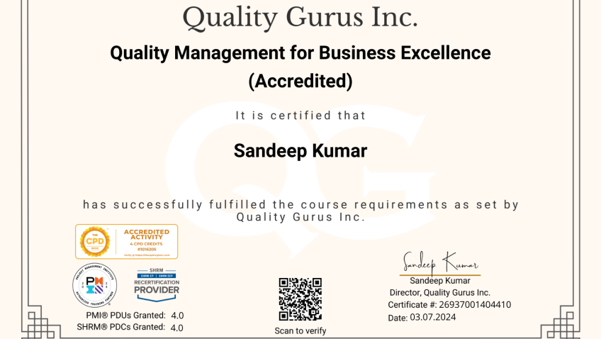 Currently for FREE for Sandeep Kumar's students who have completed Quality Management for Business Excellence course on Udemy.