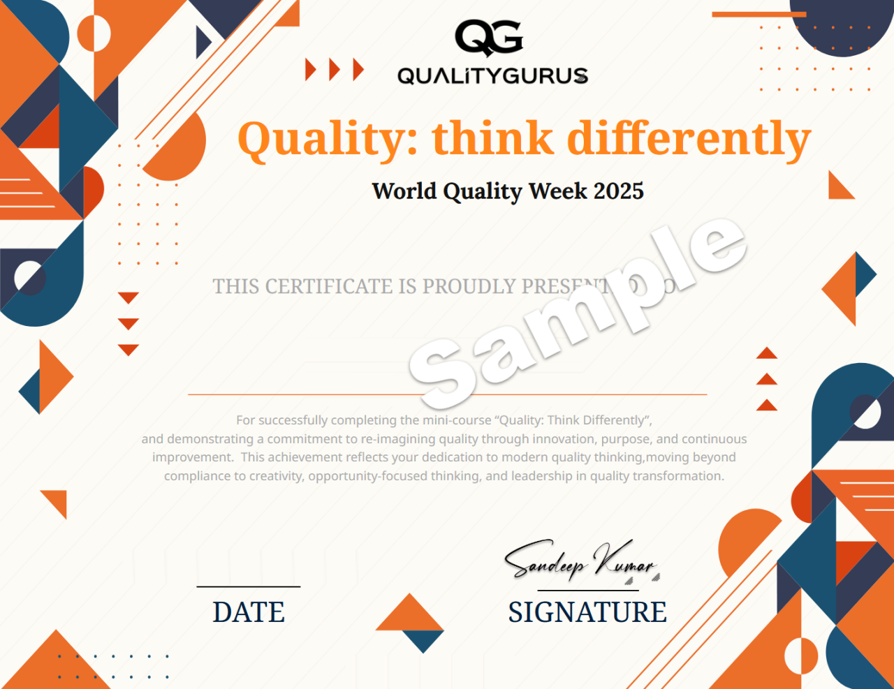This mini-course is designed to inspire a modern, innovative approach to quality management in alignment with the global theme of World Quality Week 2025: “Quality – Think Differently.”